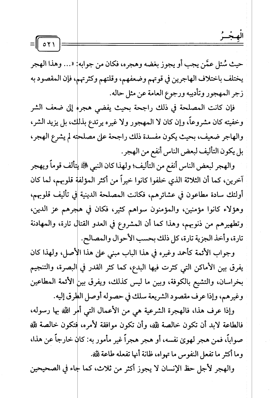 فإن كانت المصلحة في ذلك راجحة بحيث يفضي هجره إلى ضعف الشر وخفيته كان مشروعًا، وإن كان لا المهجور ولا غيره يرتدع بذلك، بل يزيد الشر، والهاجر ضعيف، بحيث يكون مفسدة ذلك راجحة على مصلحته لم يشرع الهجر، بل يكون التأليف لبعض الناس أنفع من الهجر.