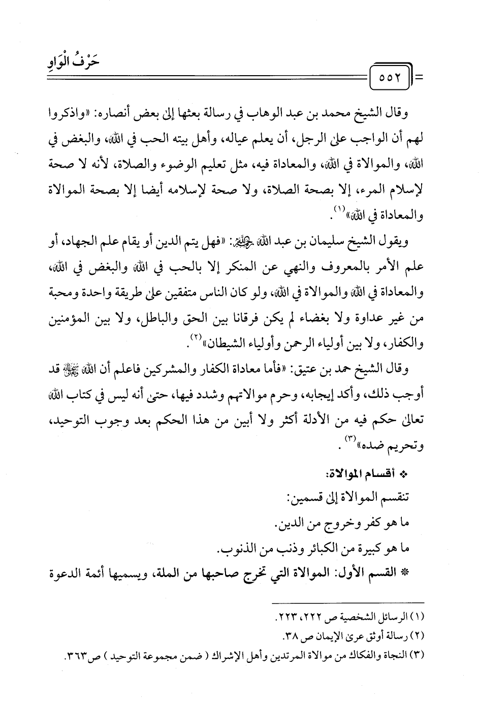(¬٣) النجاة والفكاك من موالاة المرتدين وأهل الإشراك (ضمن مجموعة التوحيد) ص ٣٦٣.