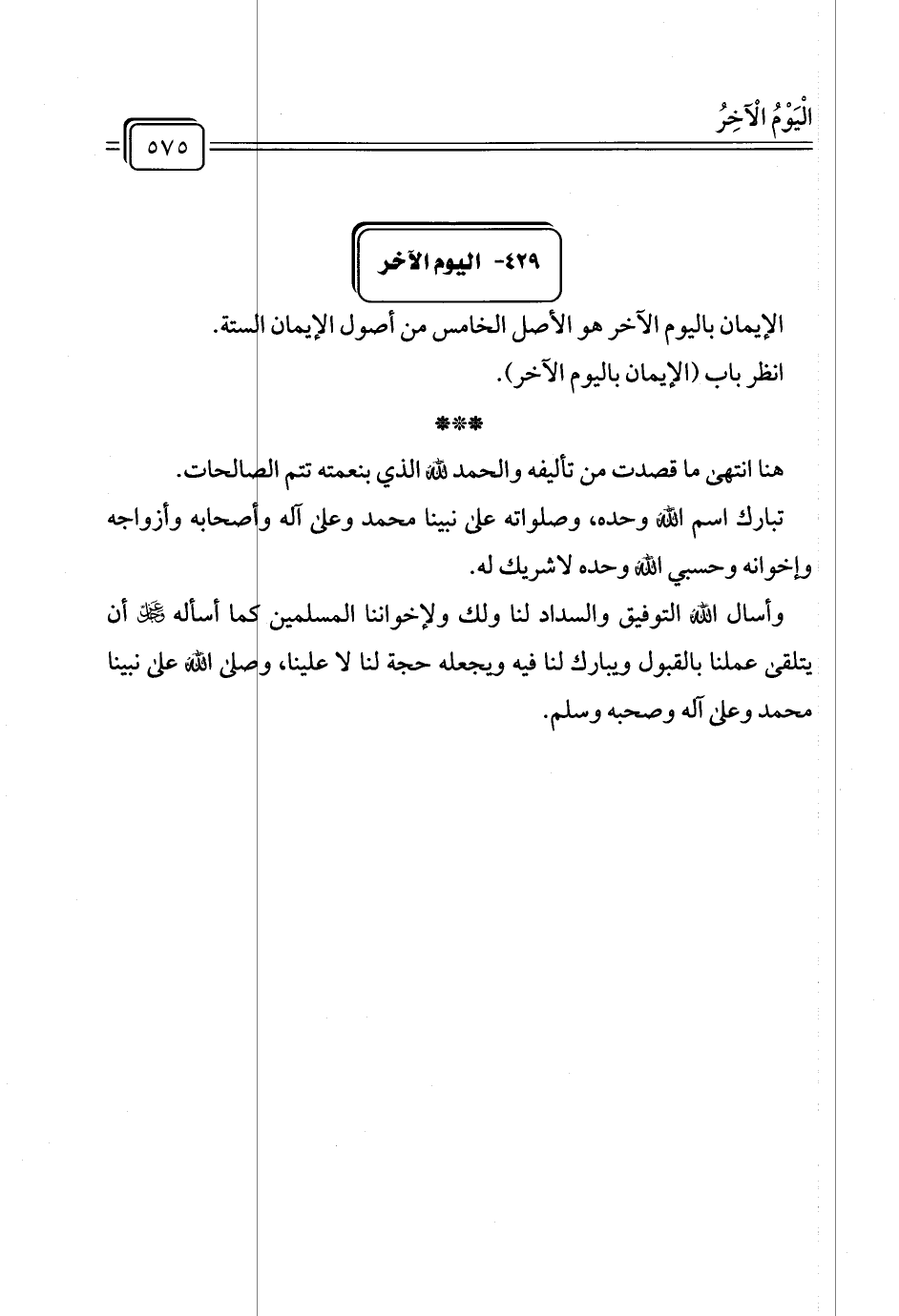 هنا انتهى ما قصدت من تأليفه والحمد لله الذي بنعمته تتم الصالحات.