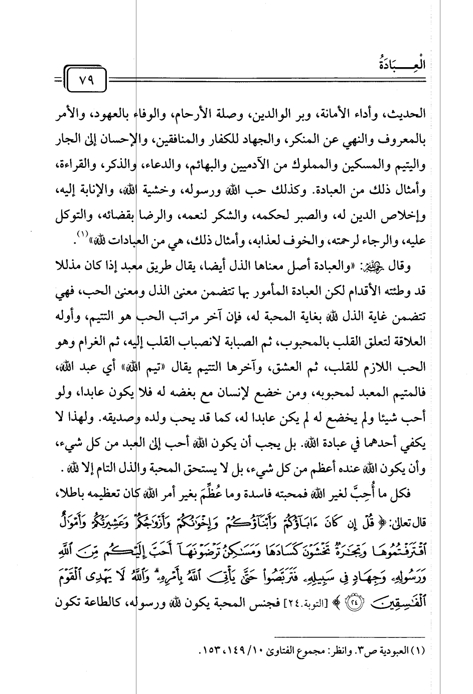 (¬١) العبودية ص ٣. وانظر: مجموع الفتاوى ١٠/ ١٤٩، ١٥٣.