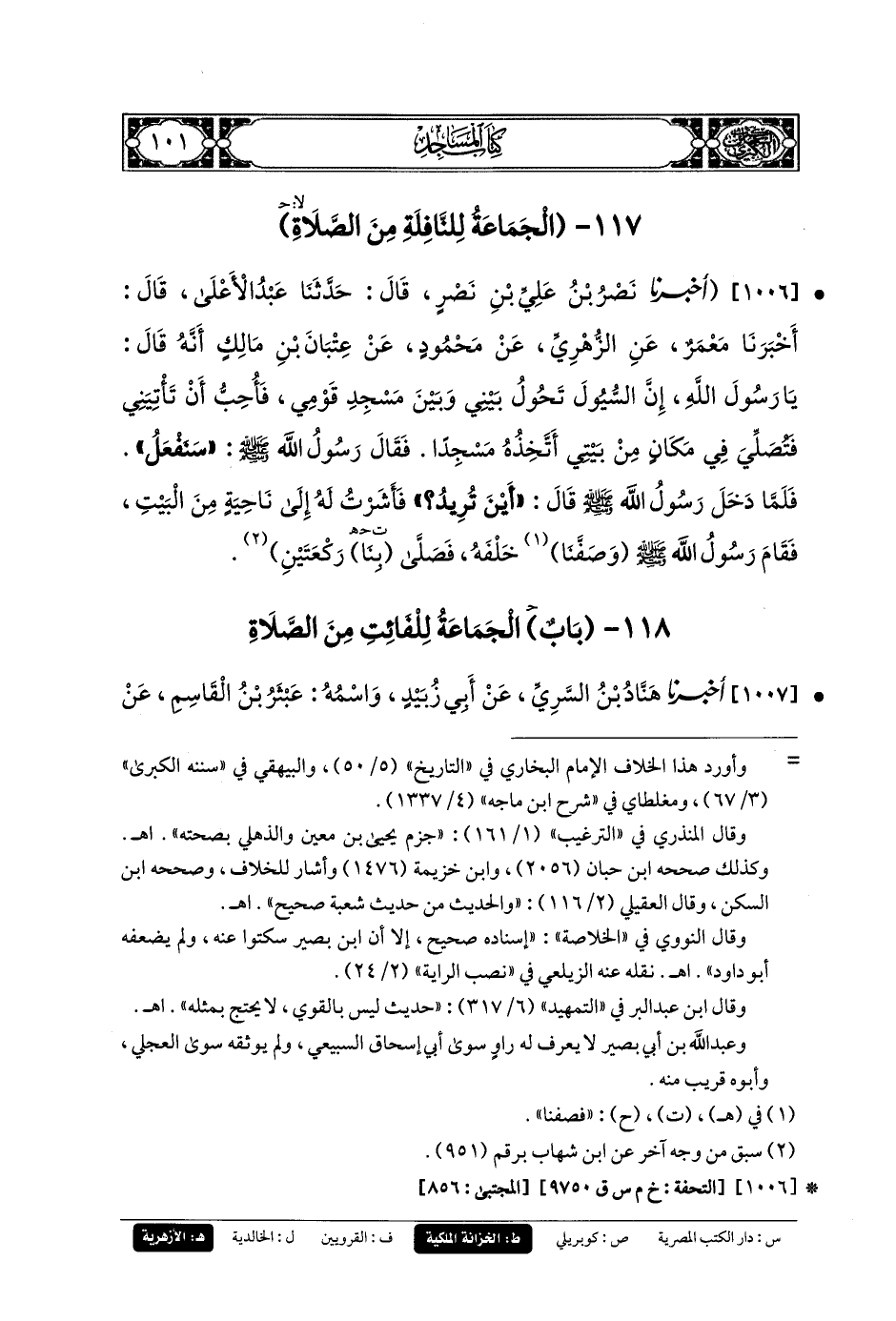117- الجَمَاعَةُ لِلنَّافِلَةِ مِنَ الصَّلاةِ.