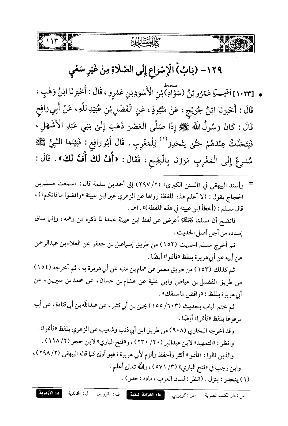 129- باب الإِسرَاعُ إِلَى الصَّلاةِ مِنْ غَيْرِ سَعْيٍ.