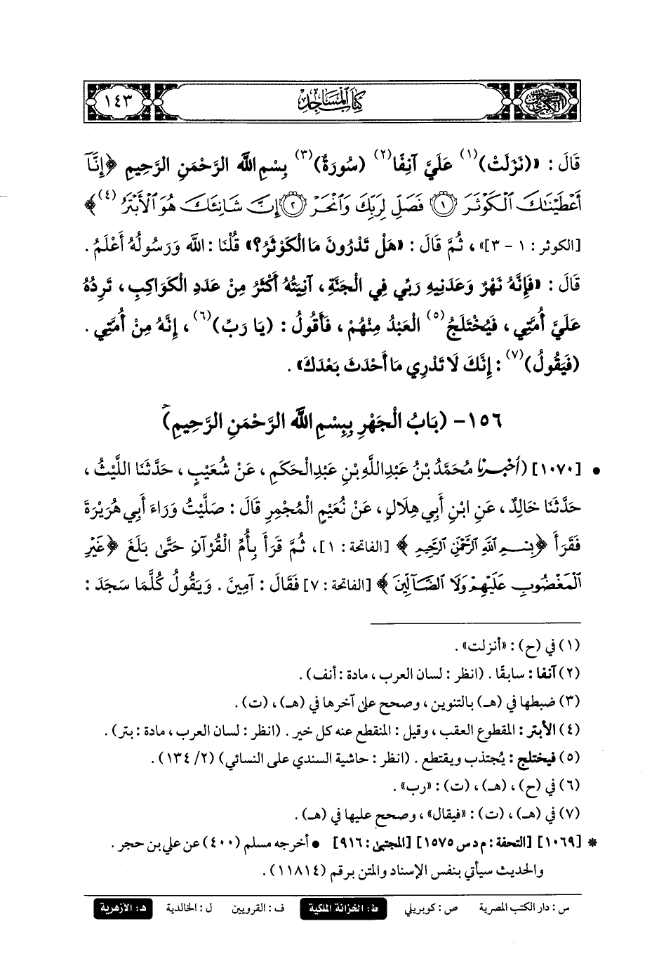 156- باب الجَهْرِ بِـ {بِسْمِ اللهِ الرَّحمَنِ الرَّحِيمِ}.