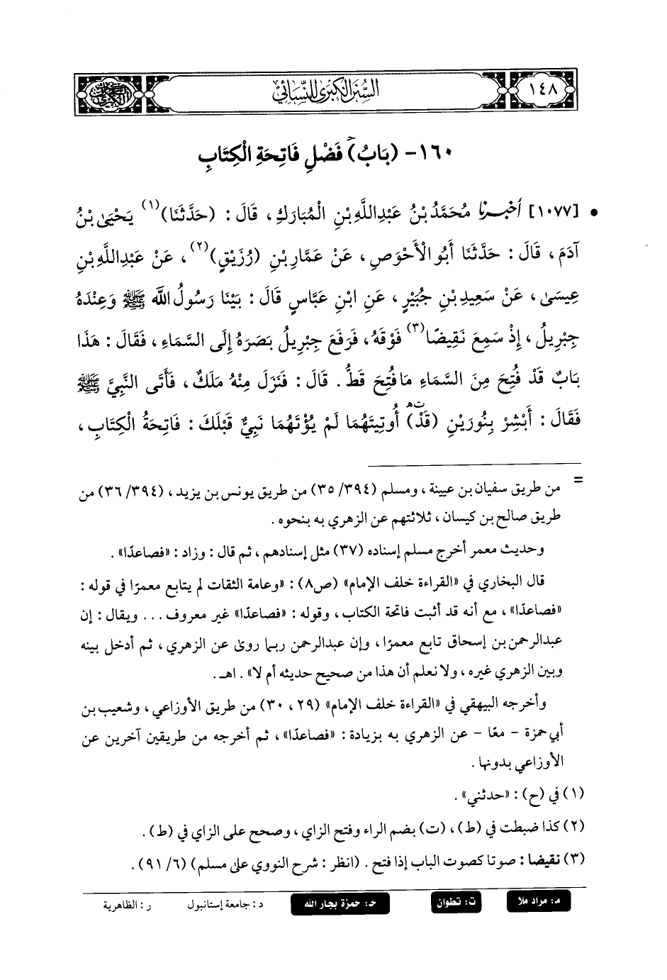160 - باب فَضْلُ فَاتِحَةِ الكِتَابِ.