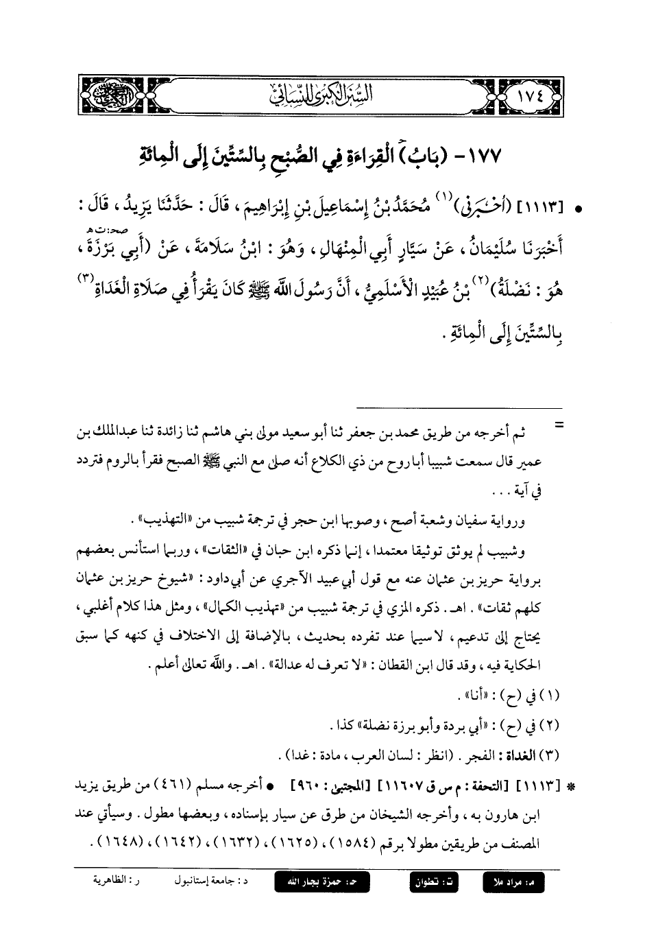 177- باب القِرَاءَةُ فِي الصُّبْحِ بِالسِّتِّينَ إِلَى المِئَةِ.
