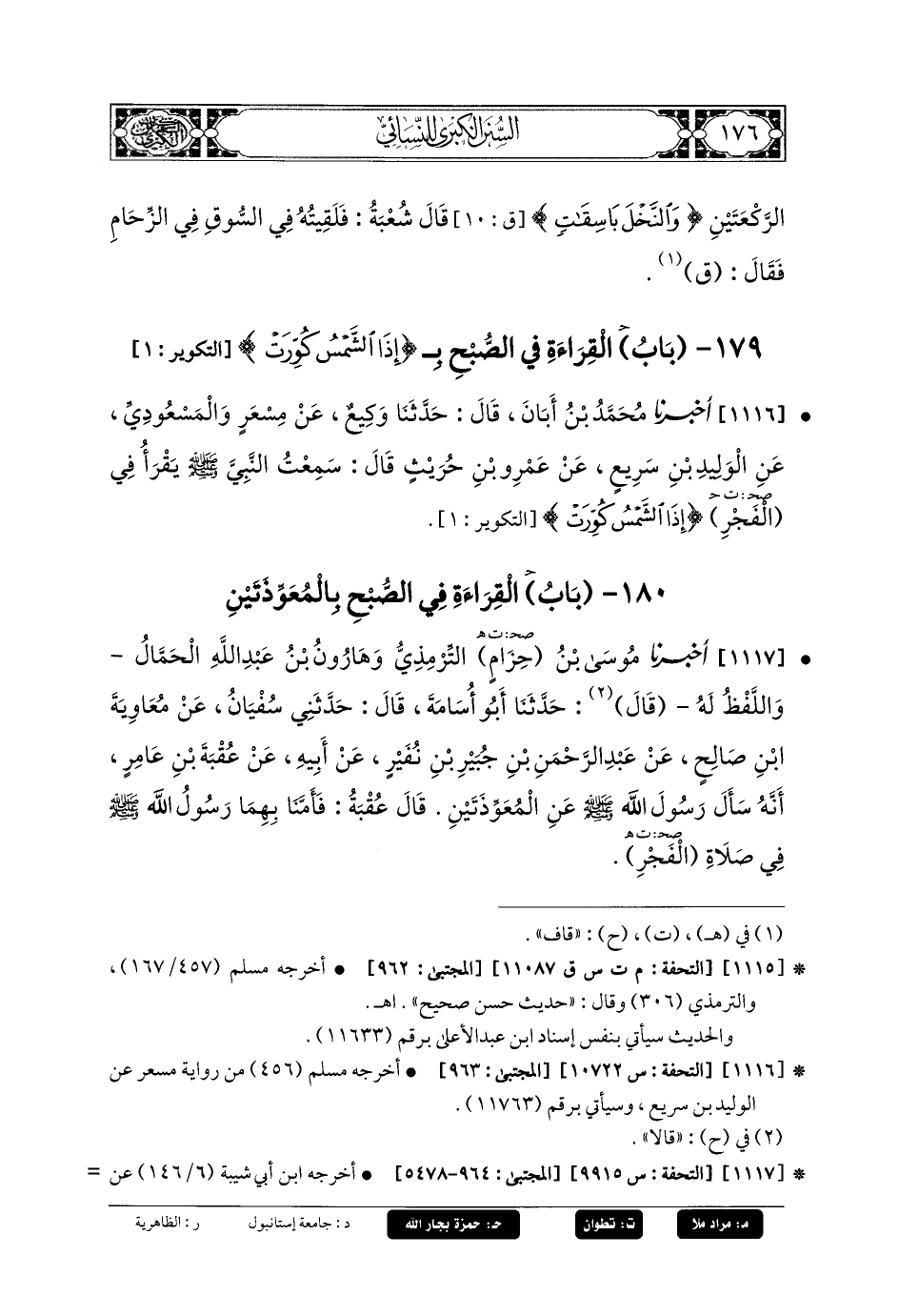 180- باب القِرَاءَةُ فِي الصُّبْحِ بِالمُعَوِّذَتَيْنِ.