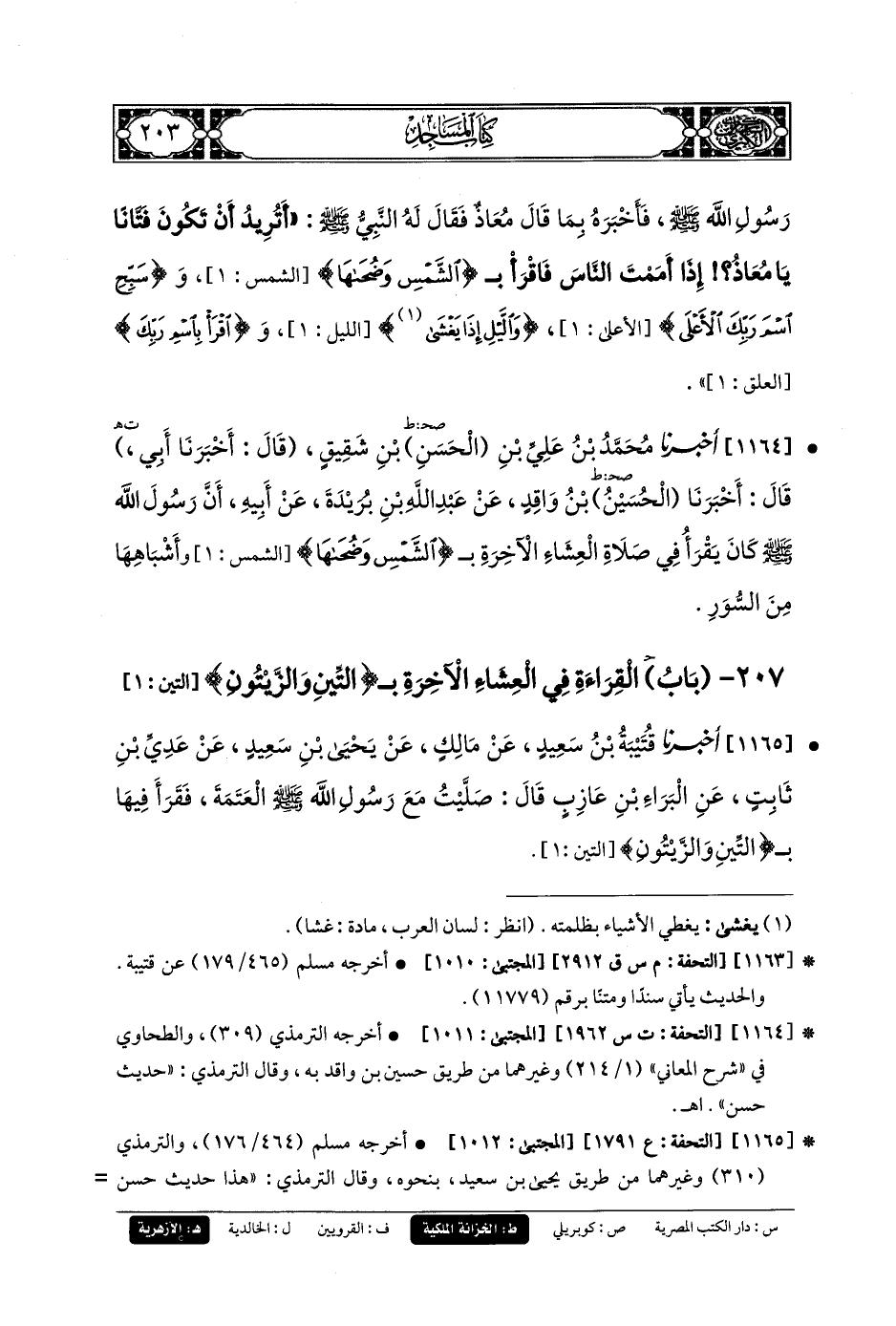 207- باب القِرَاءَةُ فِي العِشَاءِ الآخِرَةِ بِـ {وَالتِّينِ وَالزَّيْتُونِ}.