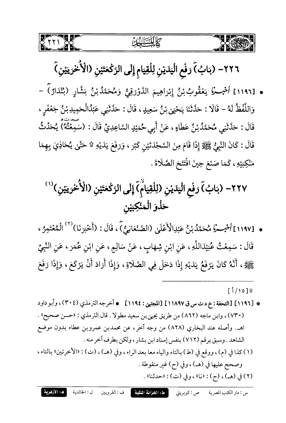 226- باب رَفْعُ اليَدَيْنِ لِلْقِيَامِ إِلَى الرَّكْعَتَيْنِ الأُخْرَيَيْنِ.