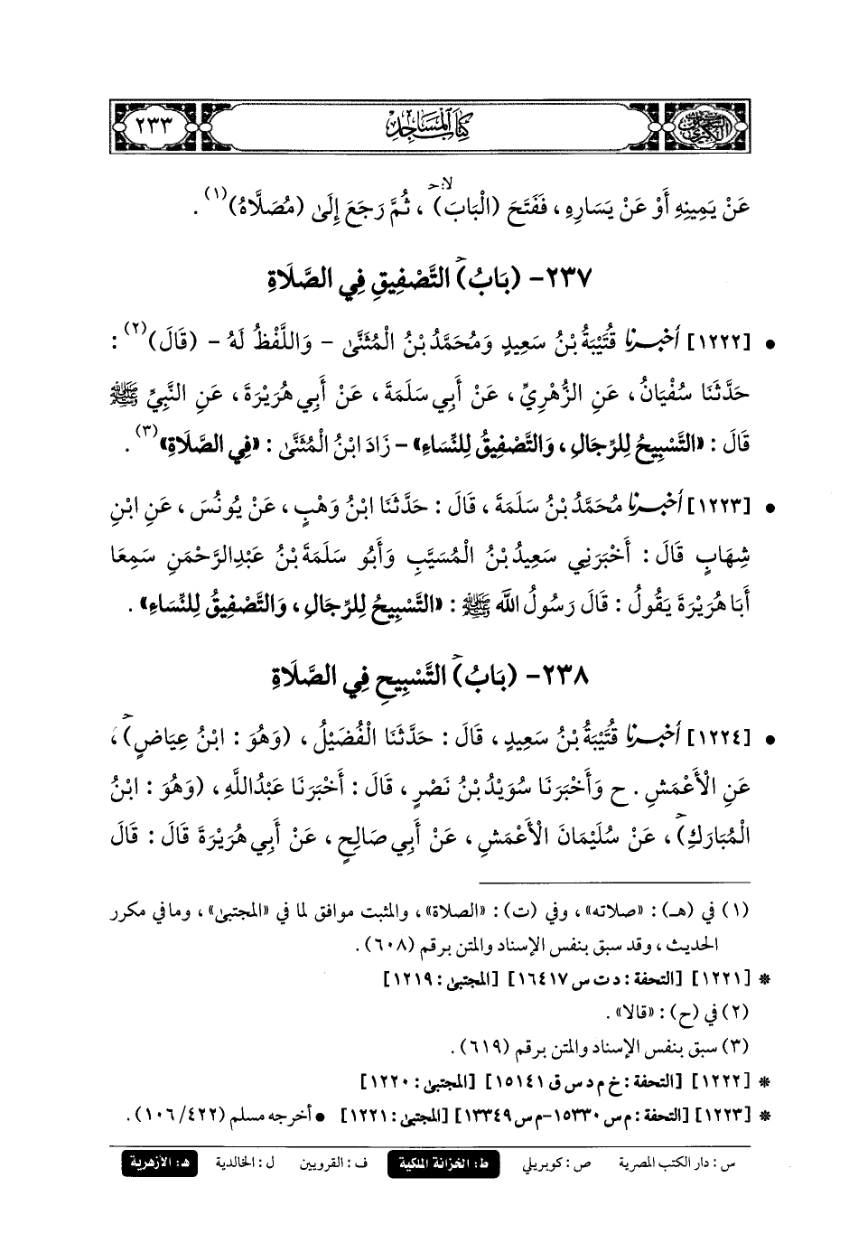 237- باب التَّصْفِيقُ فِي الصَّلاةِ.