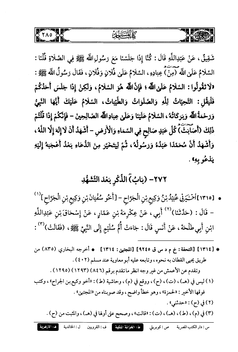 272- باب الذِّكْرُ بَعْدَ التَّشَهُّدِ.