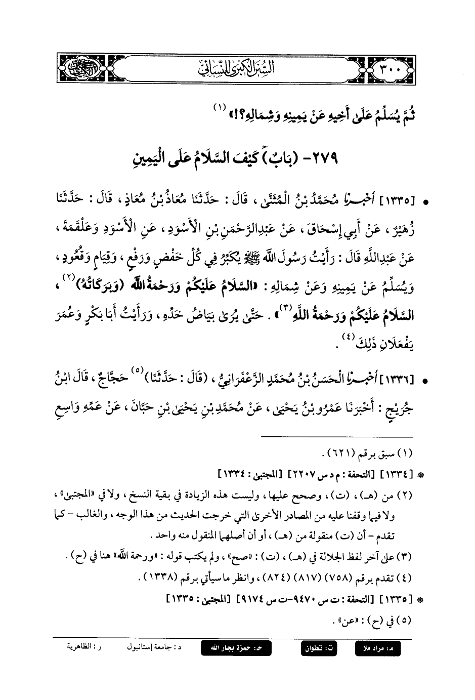 279- باب كَيْفَ السَّلامُ عَلَى اليَمِينِ.