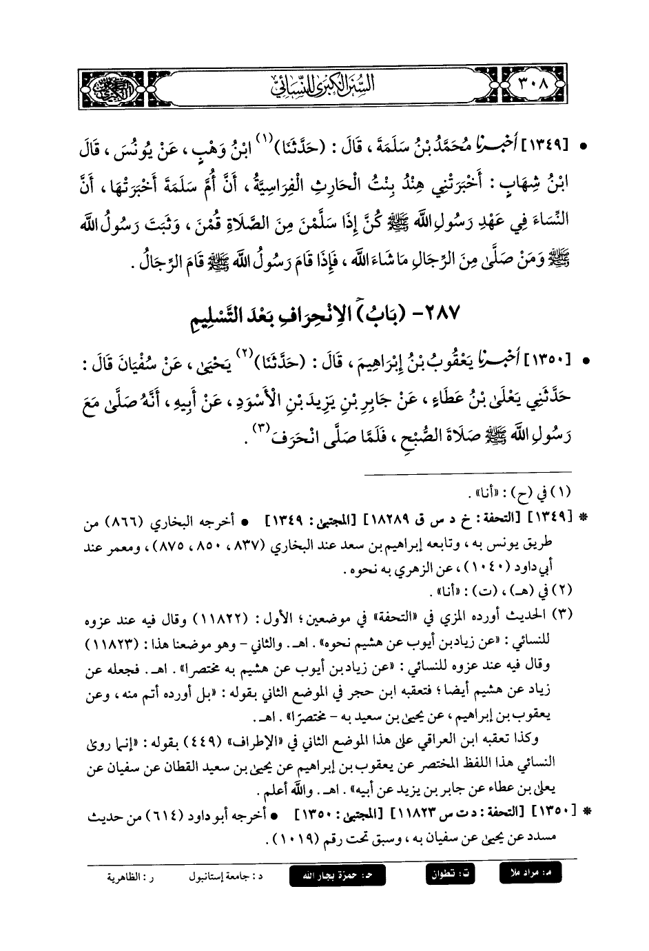 287- باب الاِنْحِرَافُ بَعْدَ التَّسْلِيمِ.