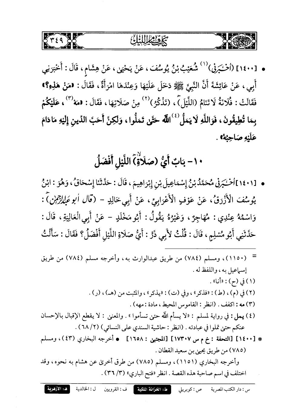 10- باب أَيُّ صَلاةِ اللَّيْلِ أَفْضَلُ.