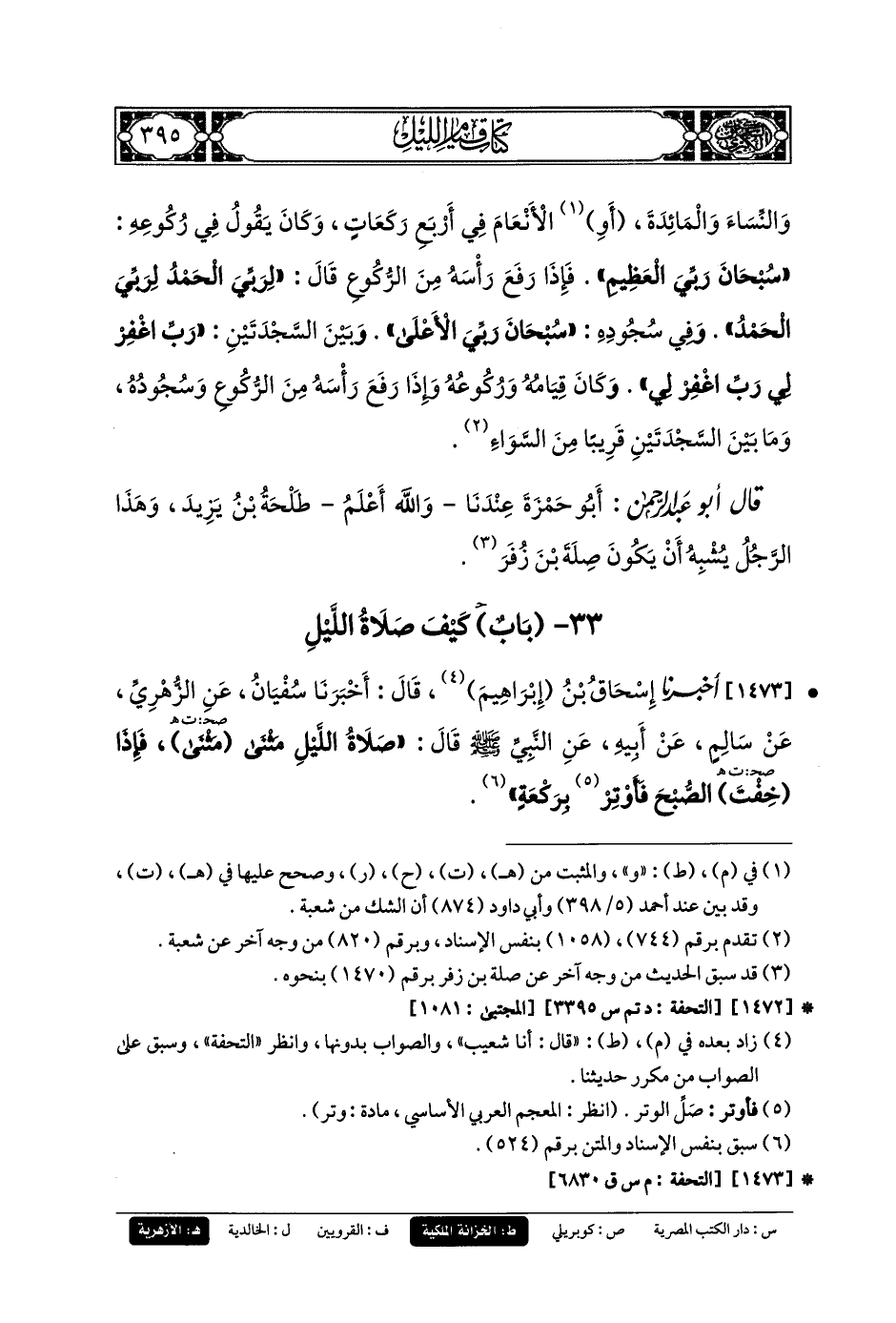 33- باب كَيْفَ صَلاةُ اللَّيْلِ؟.