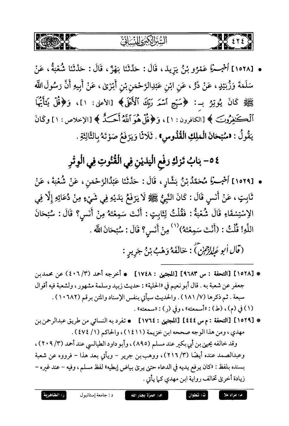 54- باب تَرْكُ رَفْعِ اليَدَيْنِ فِي القُنُوتِ فِي الوِتْرِ.