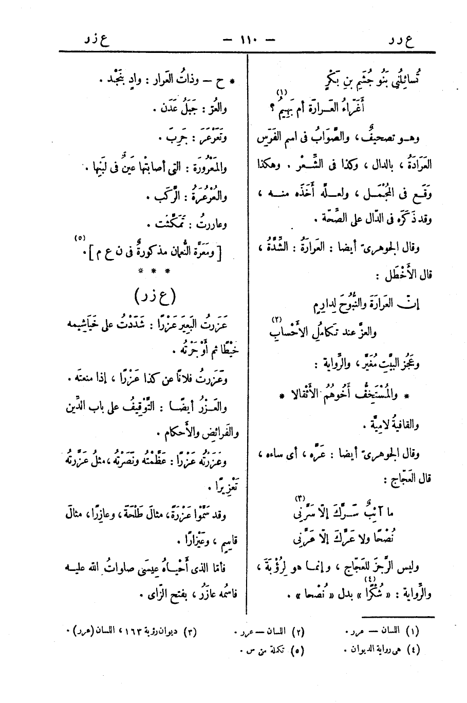 وقال الجوهريّ أيضا: عَرَّه، أي ساءه، قال العَجّاج: