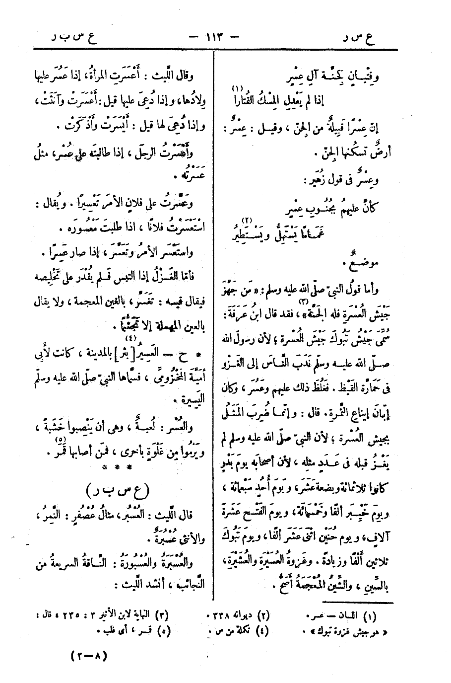 وغَزوةُ العُسَيْرَةِ والعُشَيْرَةِ، بالسِّينِ، والشِّينُ المُعْجَمَةُ أَصَحُّ.