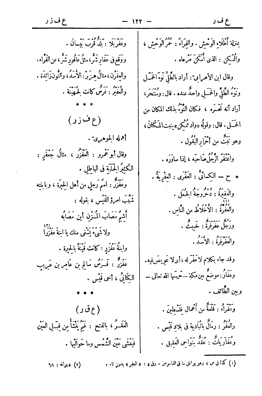 وقال أبو عَمْرو: العَفْزَرُ، مثالُ جَعْفَرٍ: الكَثِيرُ الجَلَبَةِ في الباطِلِ.