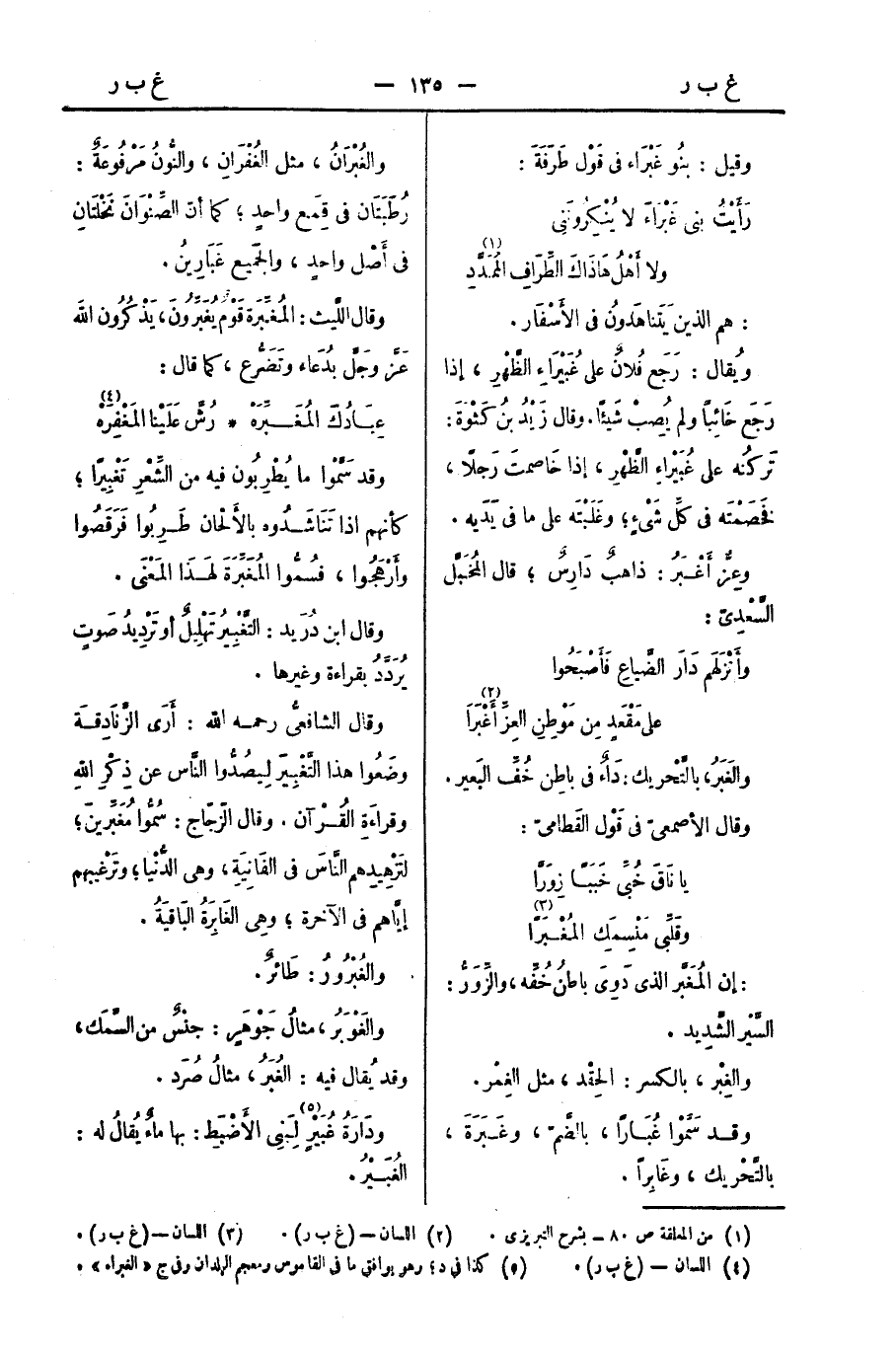 وقال اللَّيث: المُغبِّرَة قَوْمٌ يُغَبِّرُونَ، يَذْكُرُون اللهَ عَزَّ وجَلَّ بدُعَاء وتَضَرُّع، كما قال: