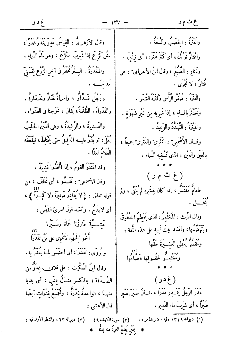 وقال اللَّيث: المُغَثْمِرُ: الذي يَحْطِمُ الحُقُوقَ ويَتَهَضَّمُها، وأنشد بيتَ لَبِيدٍ على هذه اللُّغة: