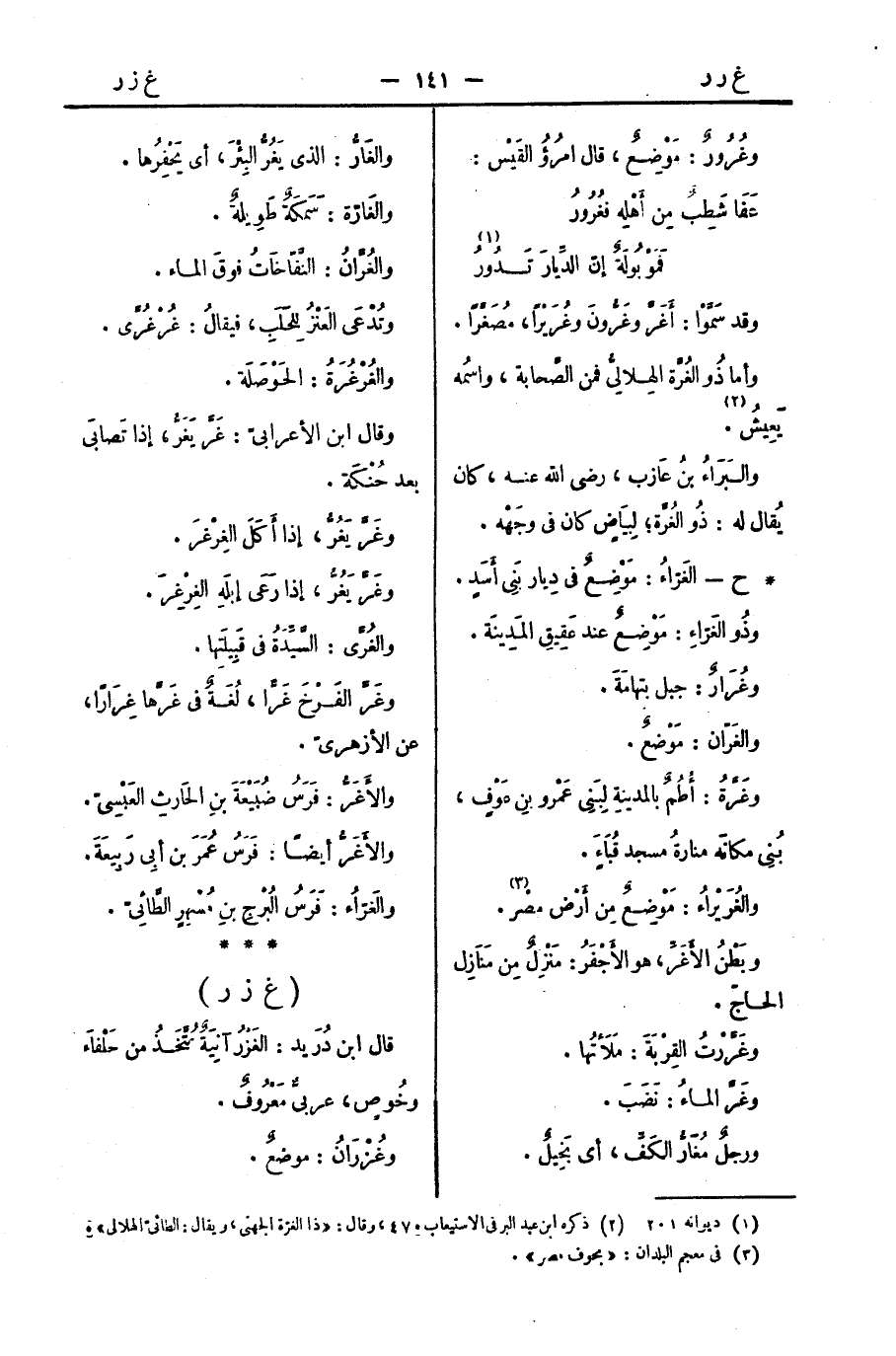 * ح - الغَرّاءُ: مَوْضِعٌ في دِيار بَنِي أَسَدٍ.