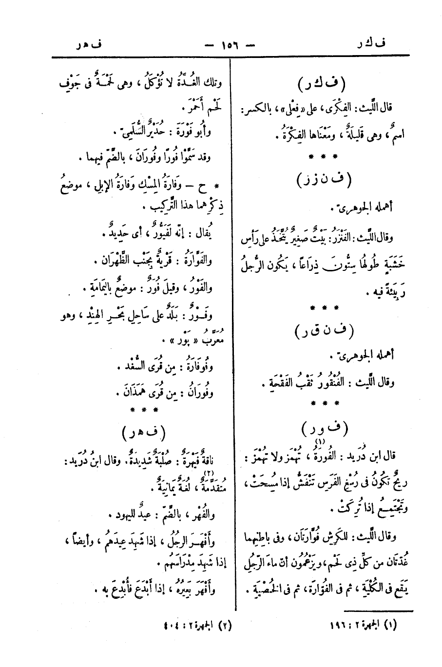 وقال اللَّيث: للكَرِشِ فُوَّارَتَان، وفي باطِنِهما غُدّتَان من كلِّ ذِي لَحْم، ويَزْعُمُون أنّ ماءَ الرّجُلِ يَقَع في الكُلْيَةِ، ثم في الفُوّارَة، ثم في الخُصْيَةِ.