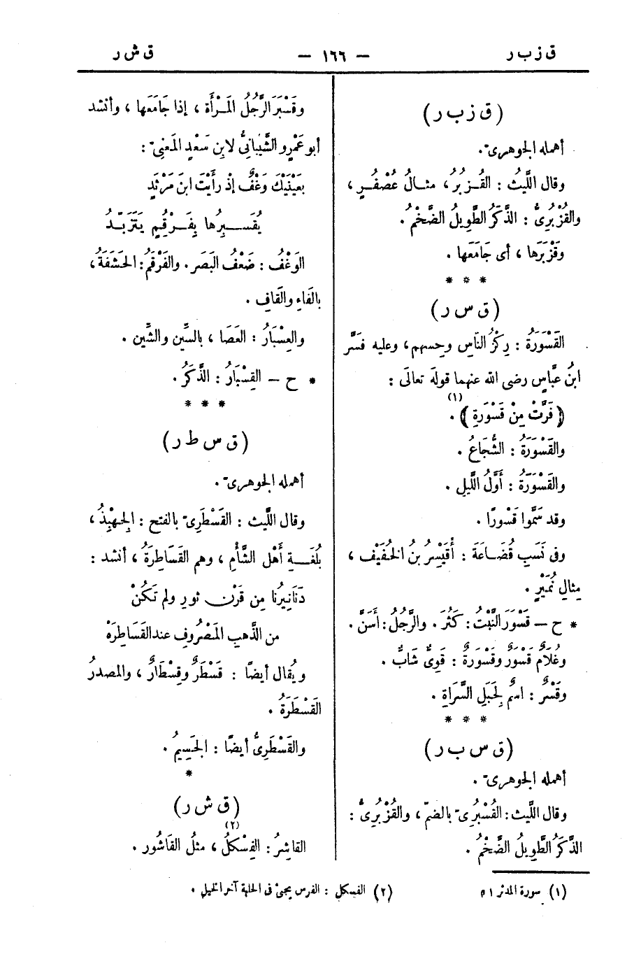 * ح - قَسْوَرَ النَّبْتُ: كَثُرَ. والرَّجُلُ: أَسَنَّ.