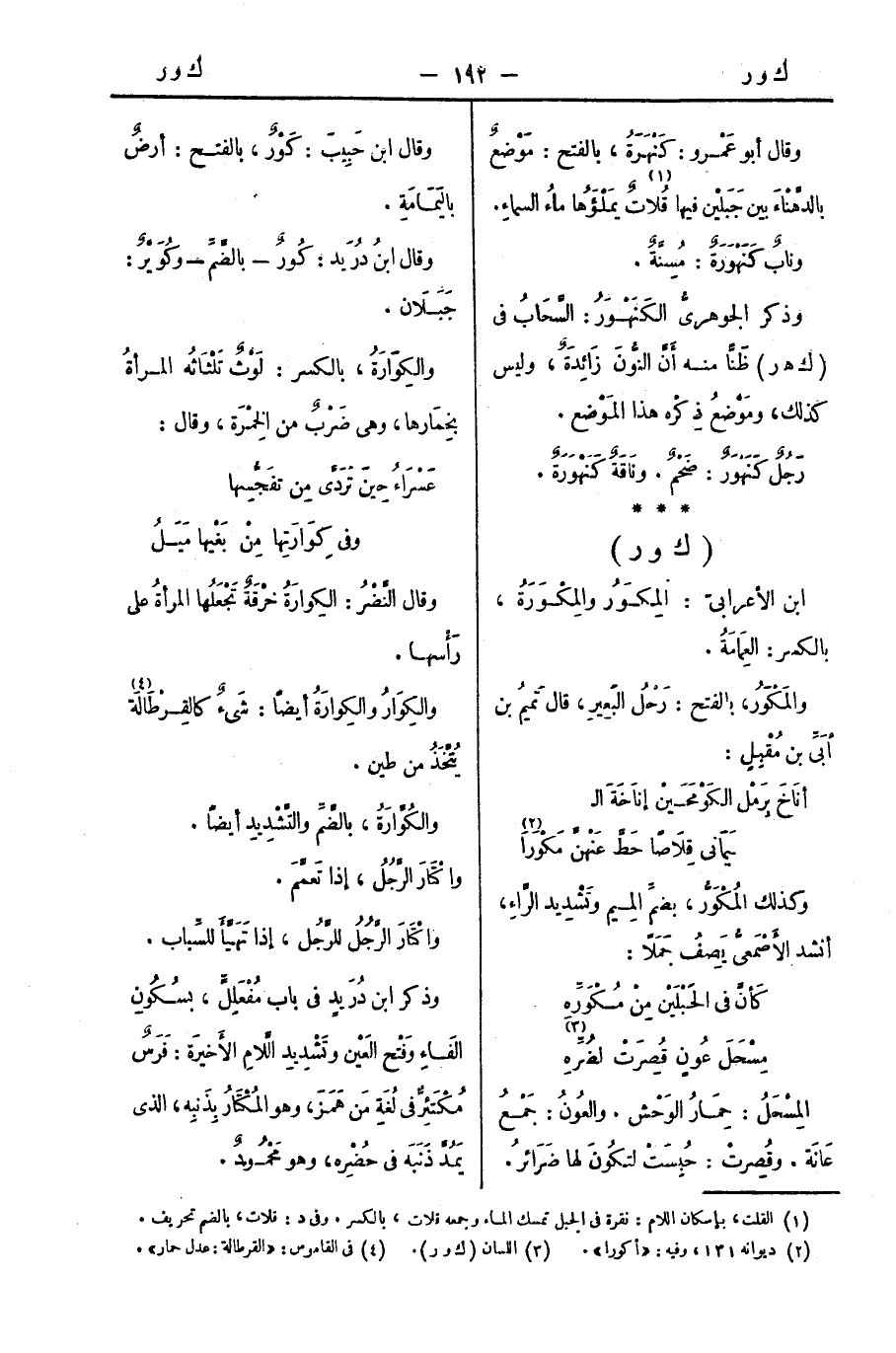 ابن الأعرابيّ: المِكْوَرُ والمِكْوَرَةُ، بالكسر: العِمَامَةُ.
