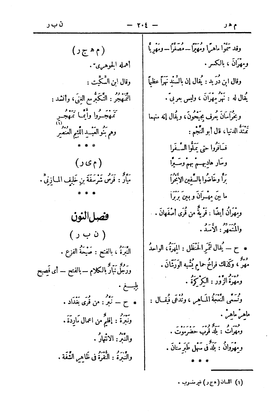 وقال ابن دُرَيد: يُقال إن بالسِّنْدِ نَهَرًا عظيمًا يُقال له: نَهْرُ مِهْرَانَ، وليس بعربيّ.