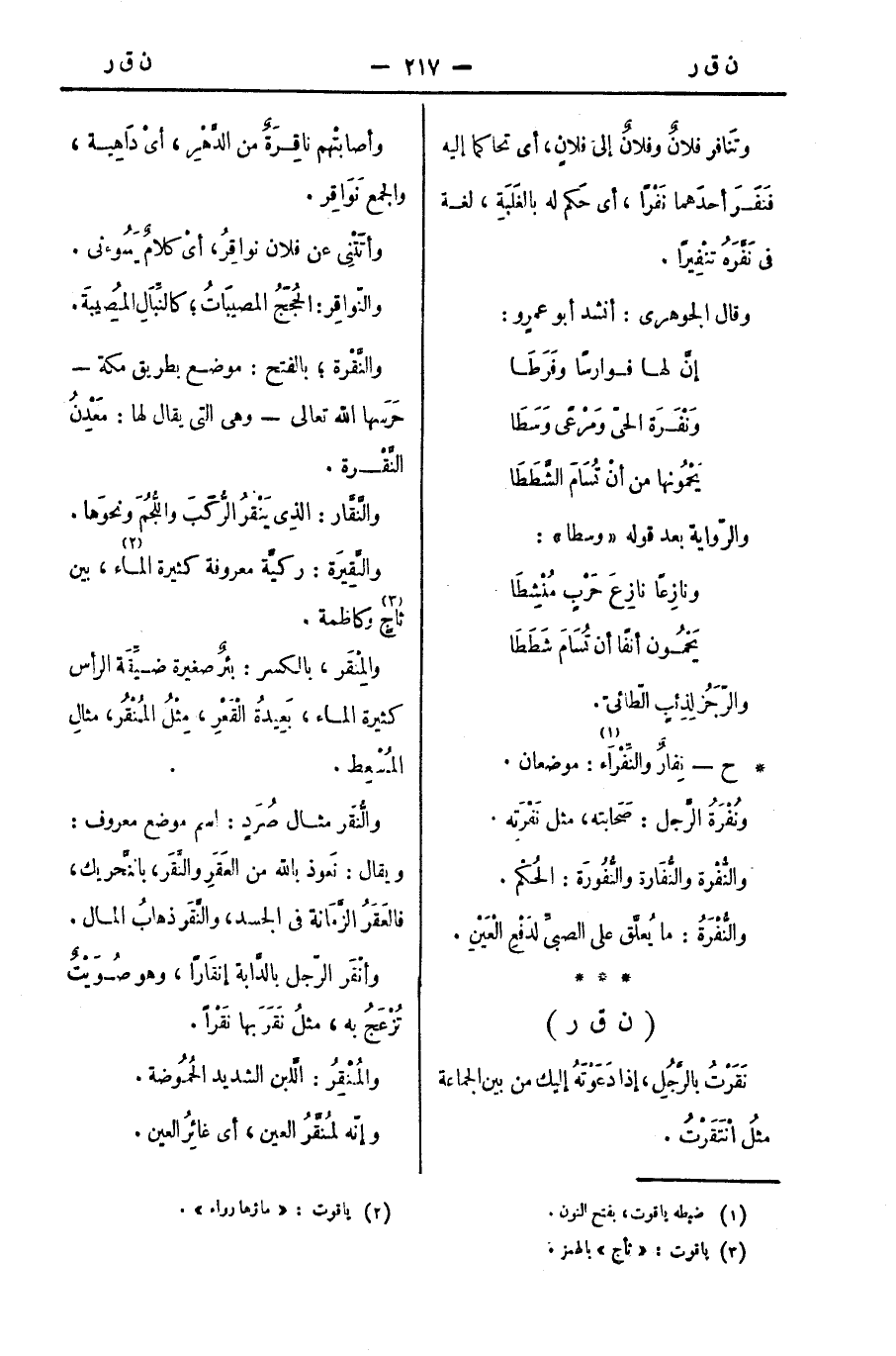 والنُّقَر مثال صُرَدٍ: اسم موضع معروف: ويقال: نَعوذ بالله من العَقَرِ والنَّقَر، بالتَّحريك، فالعَقَرُ الزَّمَانة في الجسد، والنَّقَر ذهابُ المال.