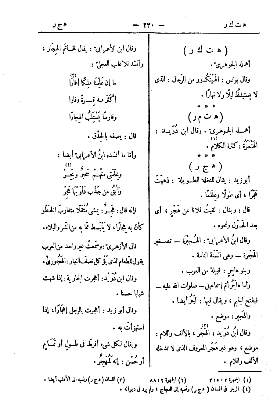 وقال ابنُ دُرَيد: الهَجَر، بالألف واللام: موضع، وهو غير هَجَر المعروف الذي لا تدخله الألف واللام.
