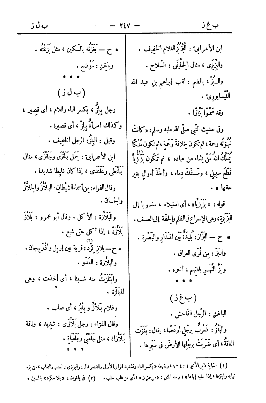 * ح - البَزّاز: بُليدَةٌ بَيْن المَذَارِ والبَصْرة.