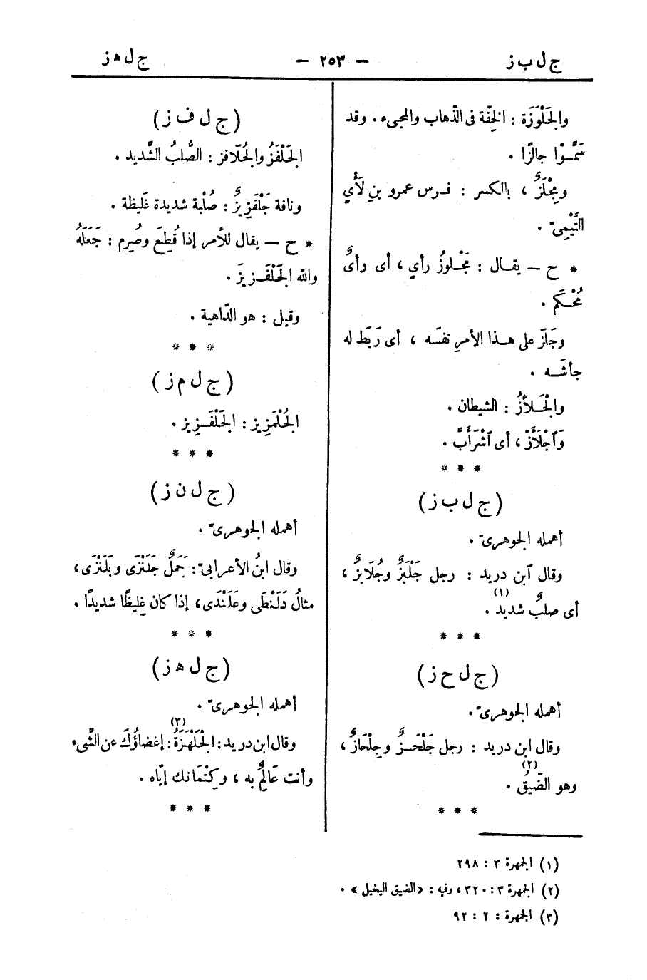وقال ابن دريد: رجل جَلْحَزٌ وجِلْحَازٌ، وهو الضّيقُ.