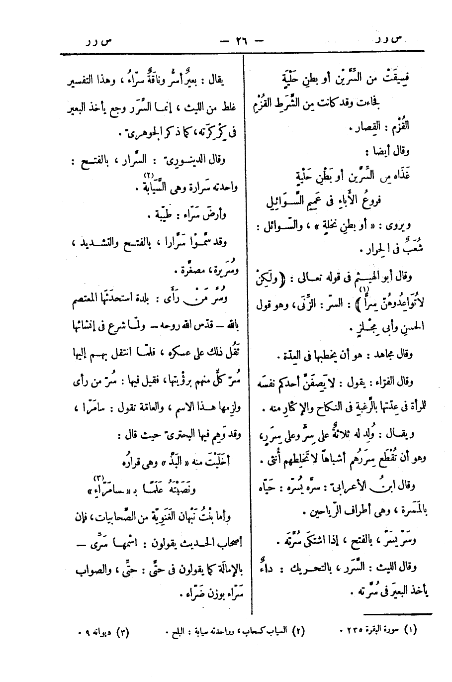 وقال أبو الهيثم في قوله تعالى: (ولَكِنْ لا تُوَاعِدُوهُنّ سِرًّا): السرّ: الزِّنَى، وهو قول الحسنِ وأبي مِجْلزٍ.