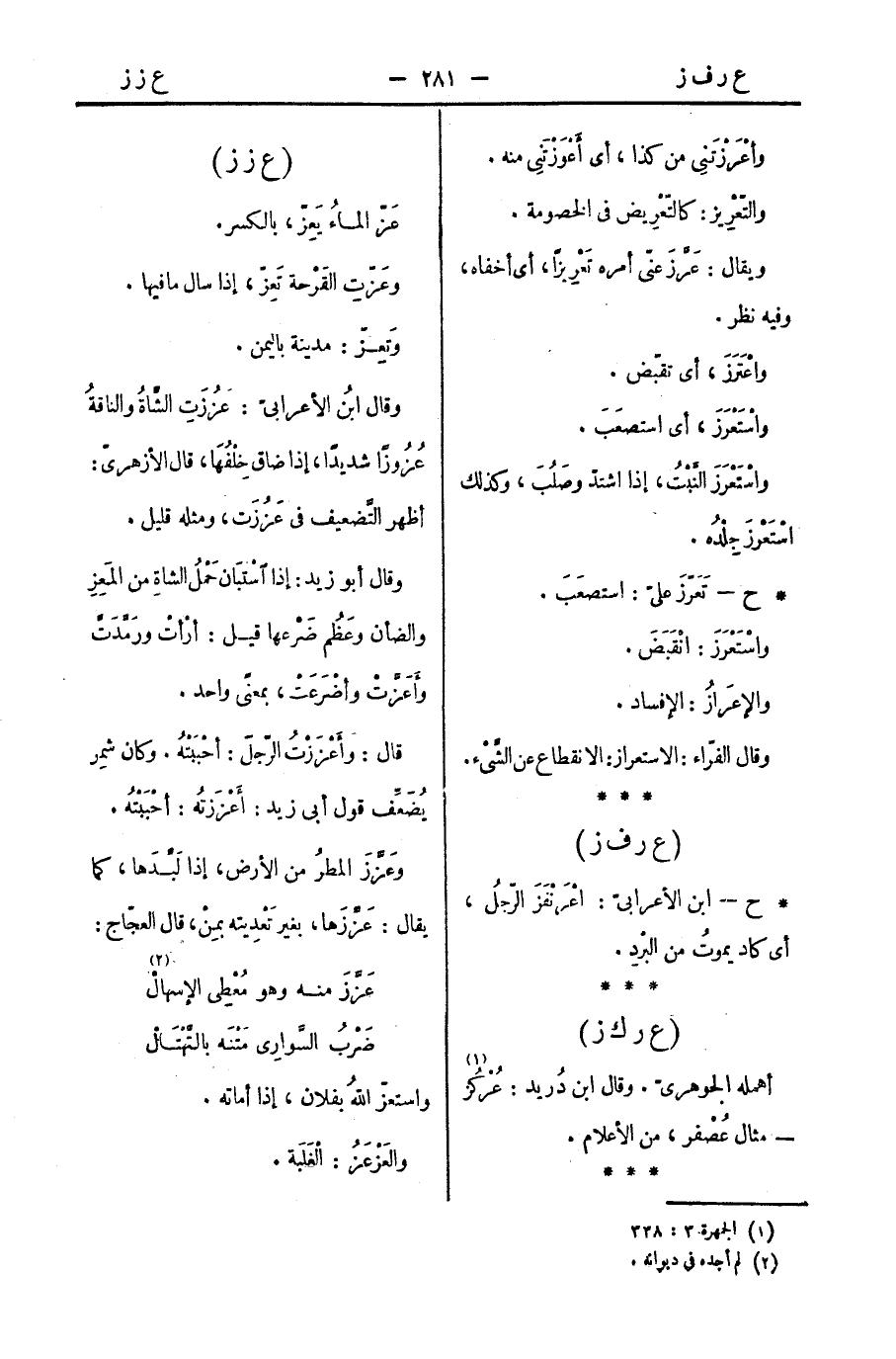 قال: وأَعْزَزَتُ الرّجلَ: أحْبَبْتُه. وكان شمِر يُضَعِّف قول أبي زيد: أَعْزَزتُه: أحْبَبْتُه.