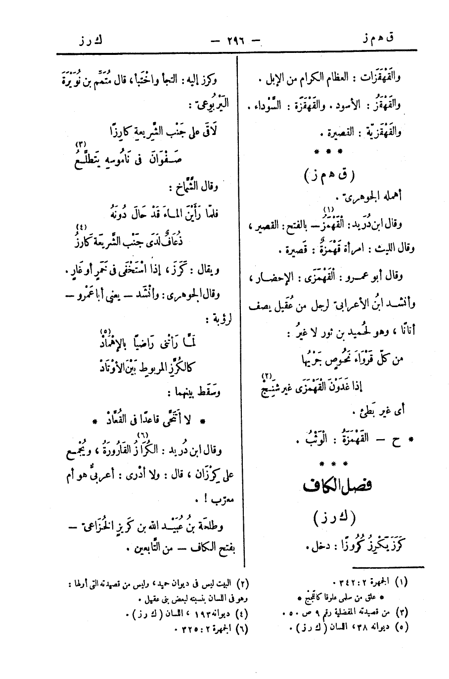 وكرز إليه: التجأ واخْتَبأ، قال مُتَمِّم بن نُوَيْرَةَ اليَرْبُوعِيّ:
