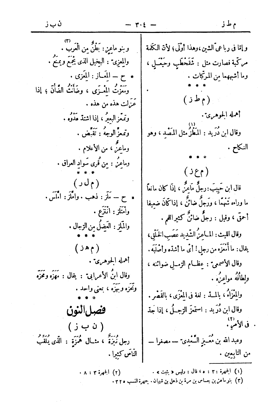 قال ابن حَبِيبَ: رجلٌ مَاعِزٌ، إذَا كان مانعًا ما وراءه شَهْمًا، ورَجلٌ ضائنٌ، إذا كَانَ ضعِيفا أحمقَ، وقيل: رجلٌ ضائنٌ كثير اللحم.