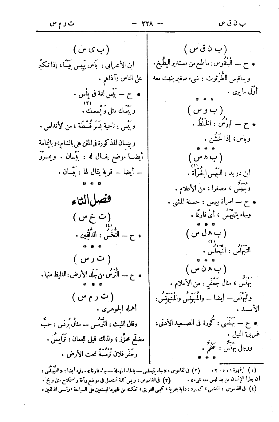 والبَهْنَس - أيضا - والمُبَهْنِسُ والمُتَبَهْنِسُ: الأسد.