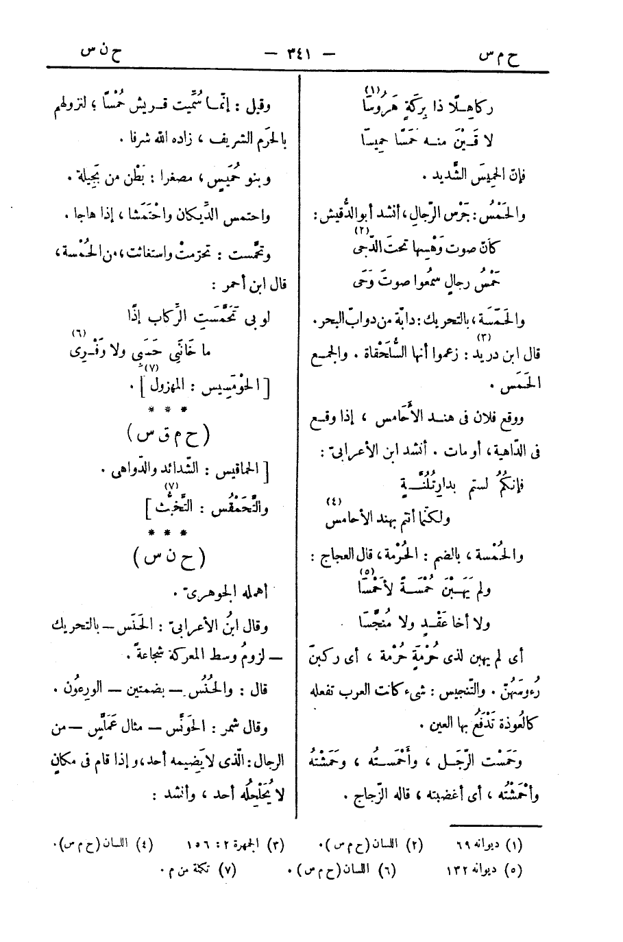 ووقع فلان في هند الأَحَامس، إذا وقع في الدّاهية، أو مات. أنشد ابن الأعرابيّ: