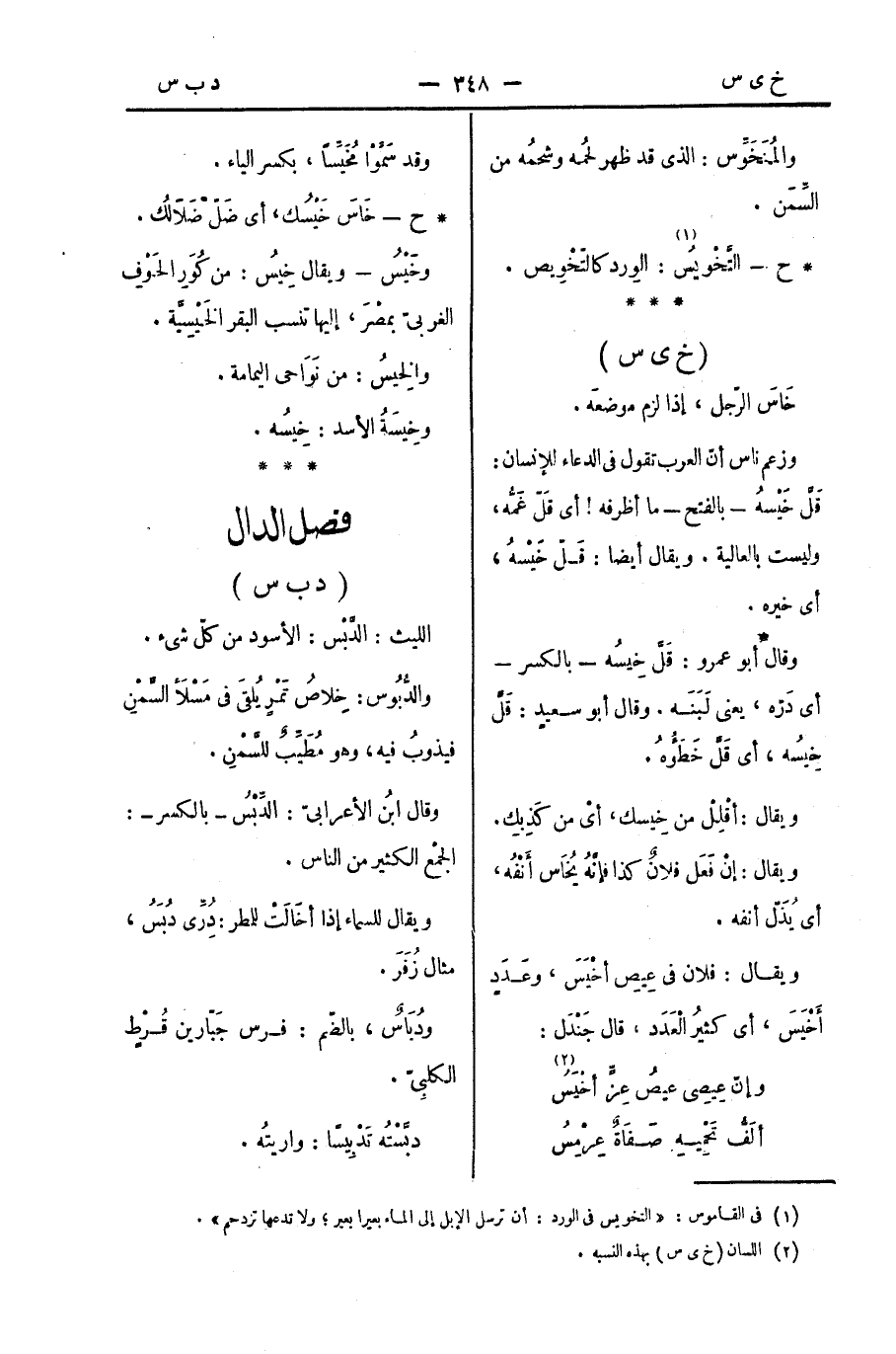 * ح - التَّخْويسُ: الوِرد كالتّخْوِيص.
