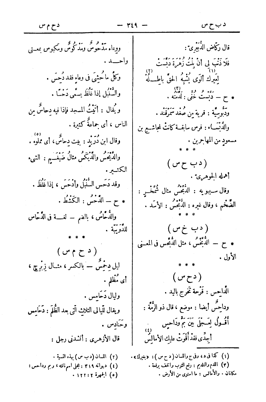 ويُقال: أتَيْتُ المسجد فإذا فيه دِحاسٌ مِن الناس، أي جماعةٌ كثيرة.