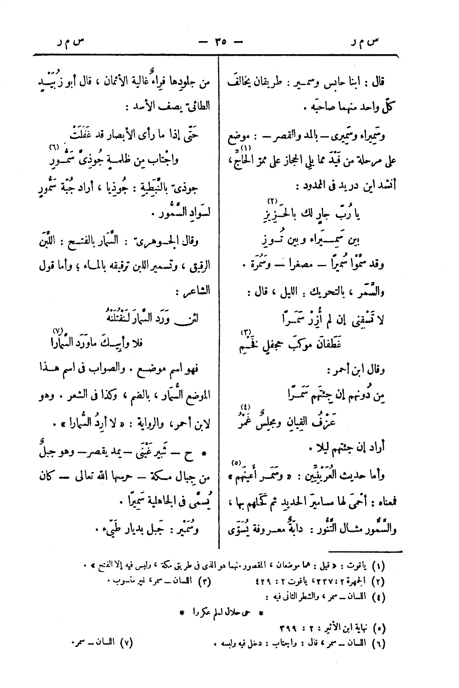 فهو اسم موضع. والصواب في اسم هذا الموضع السُّمَار، بالضم، وكذا في الشعر. وهو لابن أحمر، والرواية: " لا أرِدُ السُّمارا ".