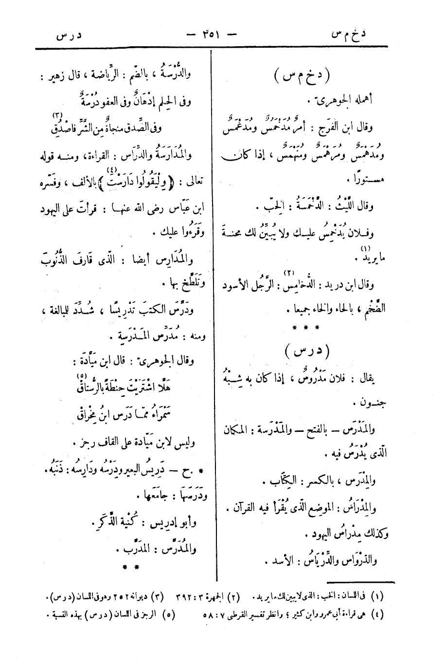 والمِدْرَاسُ: الموضِع الّذي يُقْرَأ فيه القرآن. وكذلك مِدْارسُ اليهود.