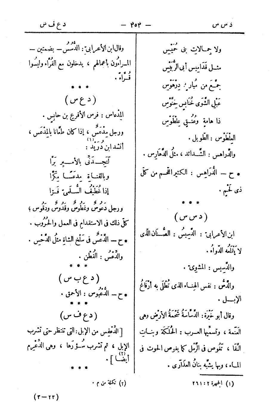 * ح - الدُّرَاهِس: الكثير اللّحم من كلّ ذي لَحْمٍ.