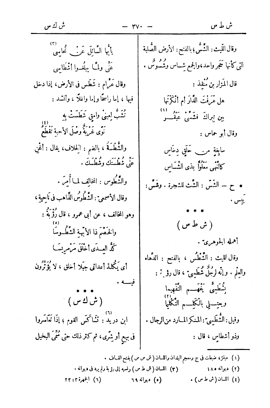 وقال عَرَّام: شَطَس في الأرض، إذا دخل فيها، إما راسخًا وإما واغلًا، وأنشد: