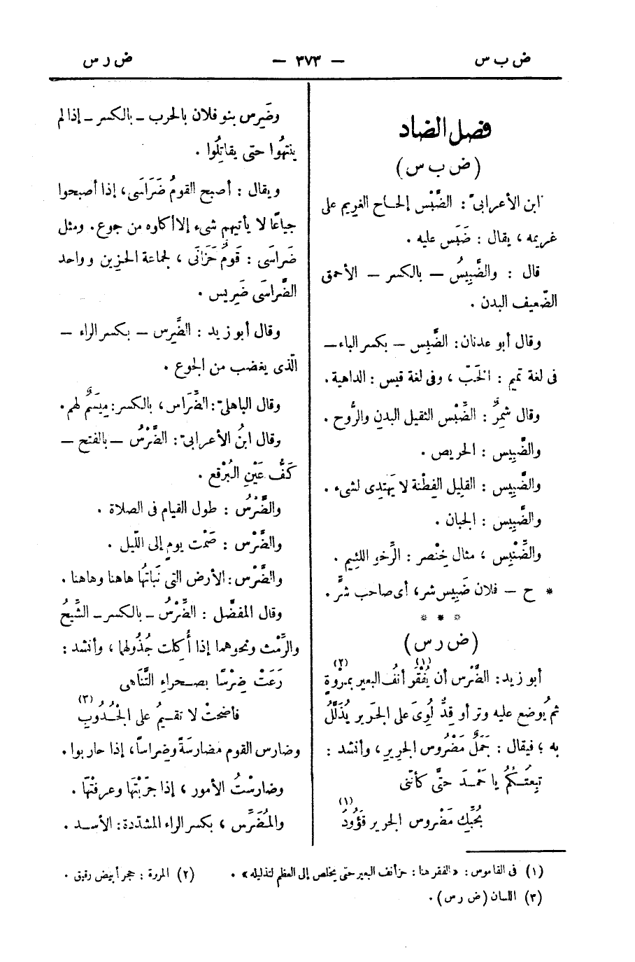قال: والضَّبِيسُ - بالكسر - الأحمق الضّعيف البدن.