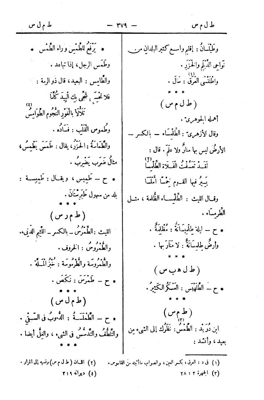 ابن دُرَيْد: الطَّمْسُ: نَظَرُك إلى الشيء مِن بعيد، وأنشد: