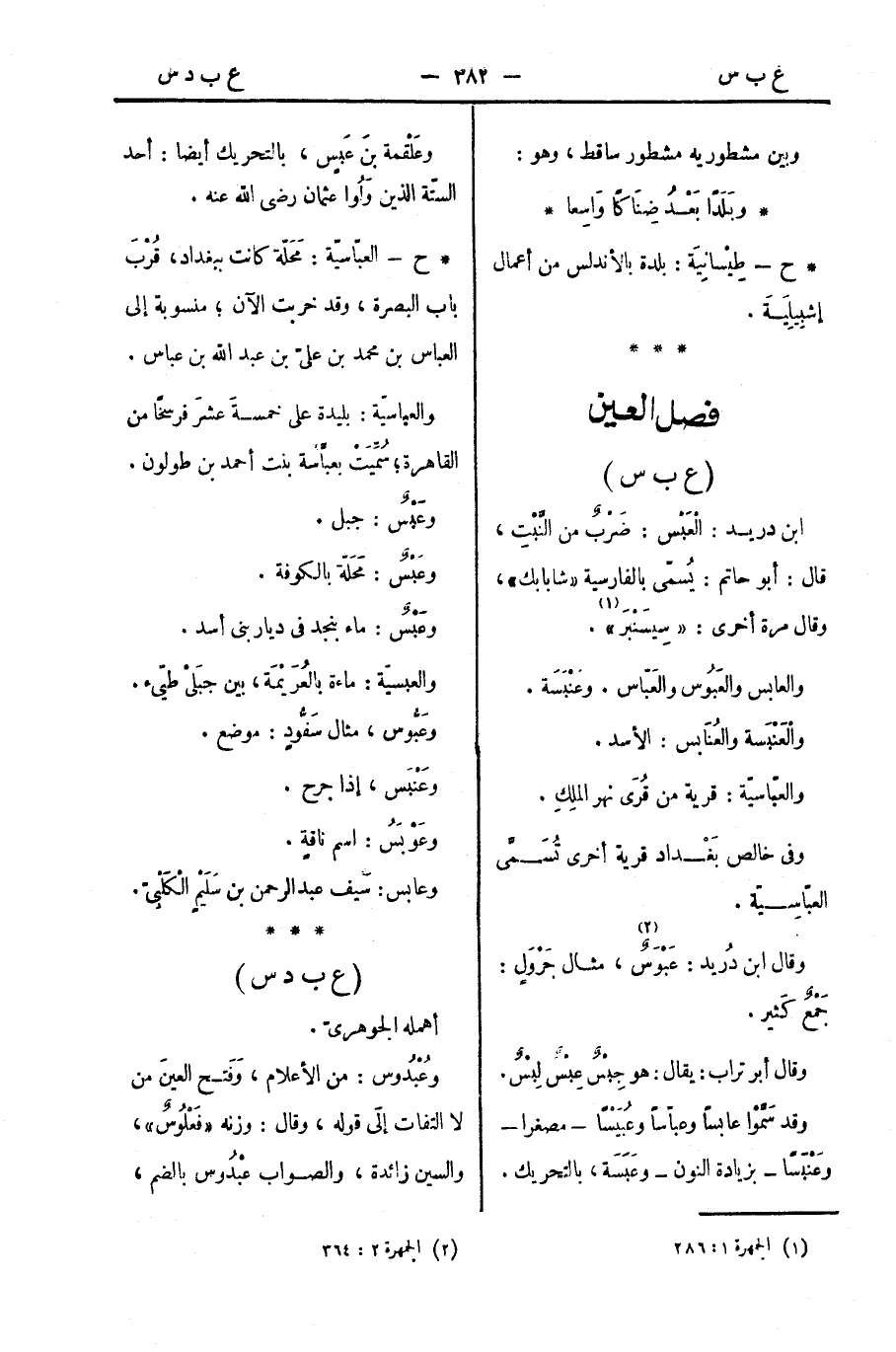 * ح - العبّاسيّة: مَحَلّة كانت ببغداد، قُرْبَ باب البصرة، وقد خربت الآن؛ منسوبة إلى العباس بن محمد بن عليّ بن عبد الله بن عباس.