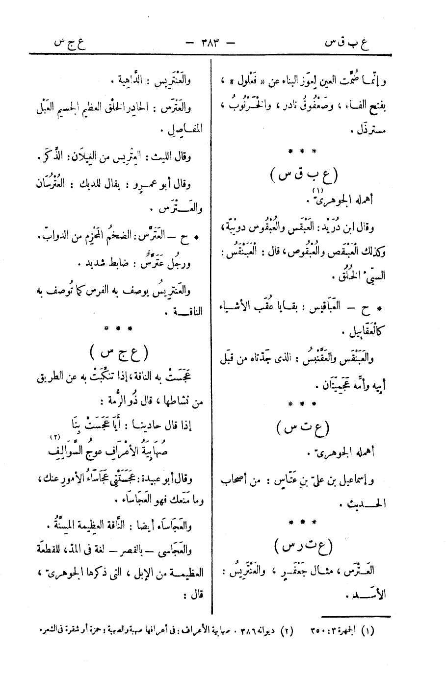 والعَجَاسى - بالقصر - لغة في المدّ، للقطعةِ العظيمة من الإبل، التي ذكرها الجوهريّ، قال: