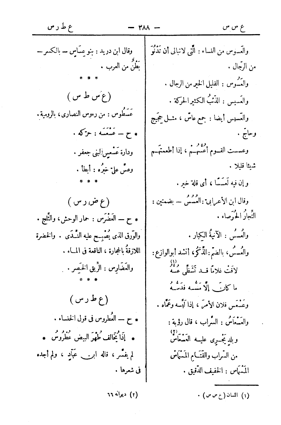 وقال ابن دريد: بنو عِسَاسٍ - بالكسر - بَطْنٌ من العرب.